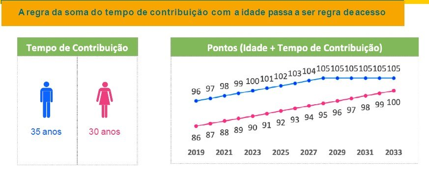 Para você entender: Imagine um homem que tenha completado 35 anos de contribuição em 2021, terá que ter no mínimo 63 anos de idade para conseguir completar a pontuação de 98 pontos exigida em 2021 (35 + 63 = 98 pontos).