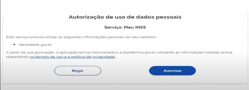 Passo 9: Você terá que acessar novamente o Portal MEU INSS. Clique na opção ENTRAR, você será direcionado para uma próxima tela de autorização de uso de dados.