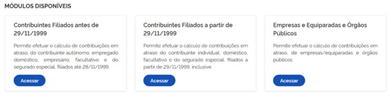 Passo 2: Acessando o Site deverá selecionar o módulo que você se insere, de acordo com a data da sua filiação ao INSS (início das contribuições).