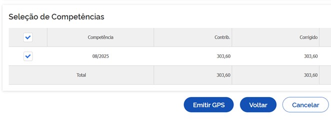 Passo 7: Na próxima tela você deve selecionar a competência e clicar em “Emitir GPS”.